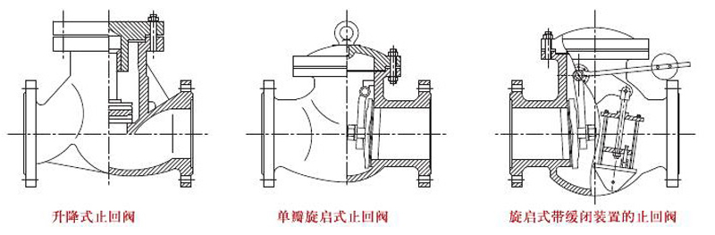 止回閥有多種設計結構,適用于不同安裝形式的管理。H41H升降式止回閥只能用于水平管道安裝;H44H單辯旋啟式止回閥,即可用于水平管道安裝,也可用于垂直管道安裝。HH44H旋啟式帶緩閉裝置的止回閥,能有效防止因停電產生的水擊。